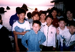 朝4時起床。日の出見学を希望した人たちは、眠い目をこすりながら海岸沿いを夫婦岩まで歩いていきました。 そして、いまかいまかと待っていると水平線から夫婦岩の間をきれいに上っていく太陽を見ることができました。太陽が上ってくるときは、見物しに来ていた100名以上の人たちから歓声と拍手が起こりました。 旅館の人に聞くと、「これだけきれいに見られるのは、一年に何回もないことです。すばらしい日に泊まられましたね。」と、話してくださいました。